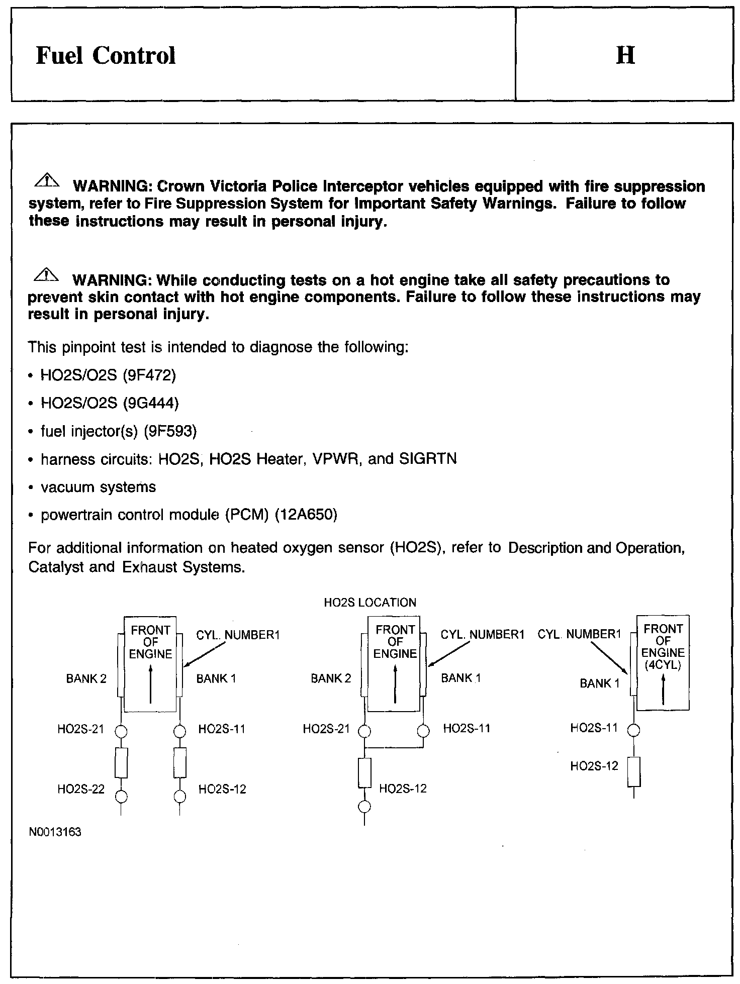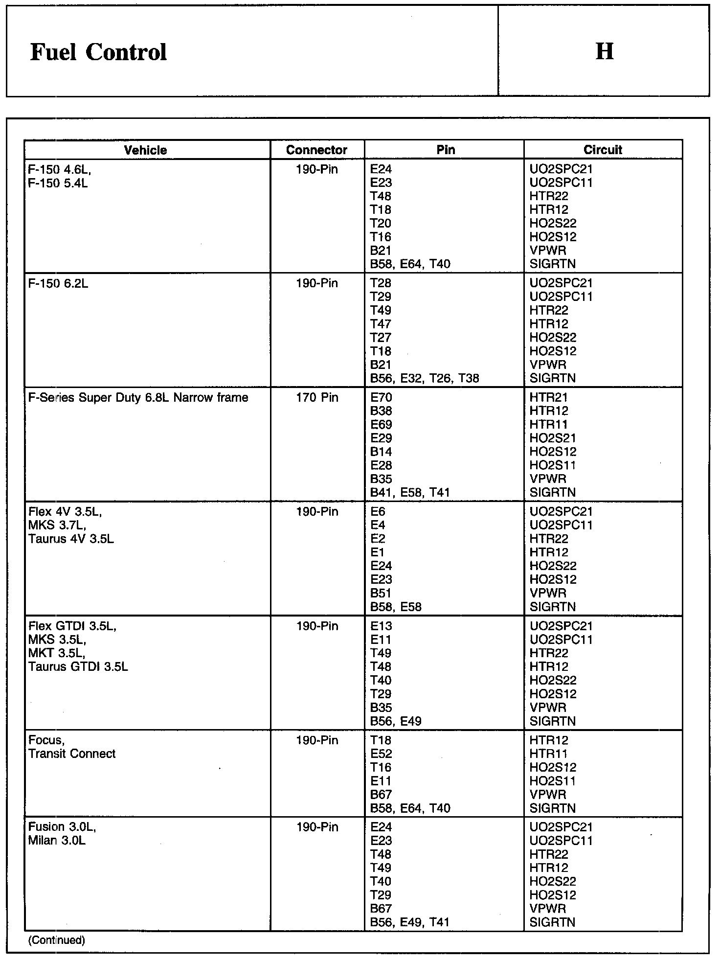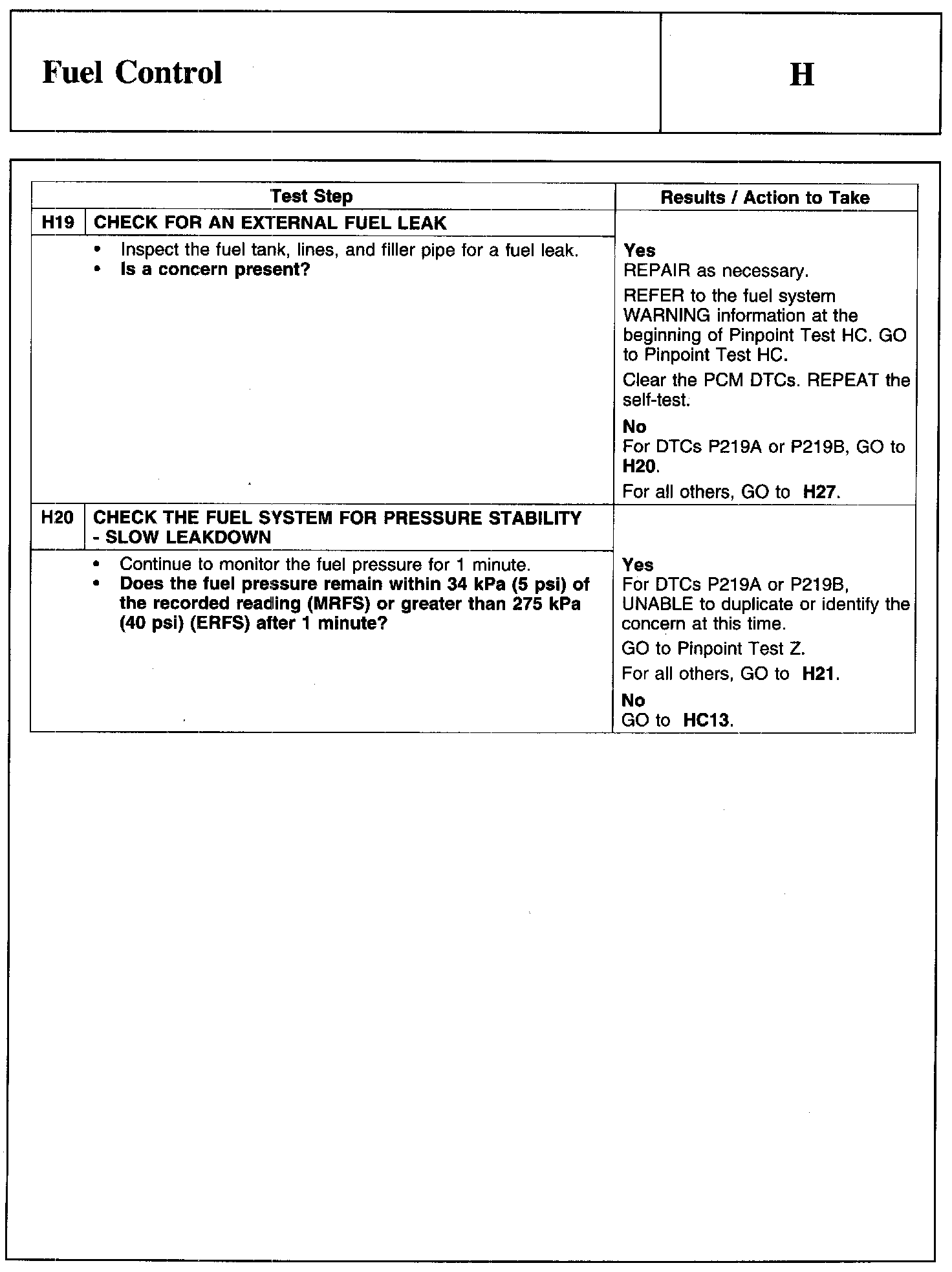 Home >> Ford >> 2010 >> Taurus AWD V6-3.5L >> Repair and Diagnosis >> Powertrain Management >> Computers and Control Systems >> Testing and Inspection >> Pinpoint Tests >> Test H: Fuel Control