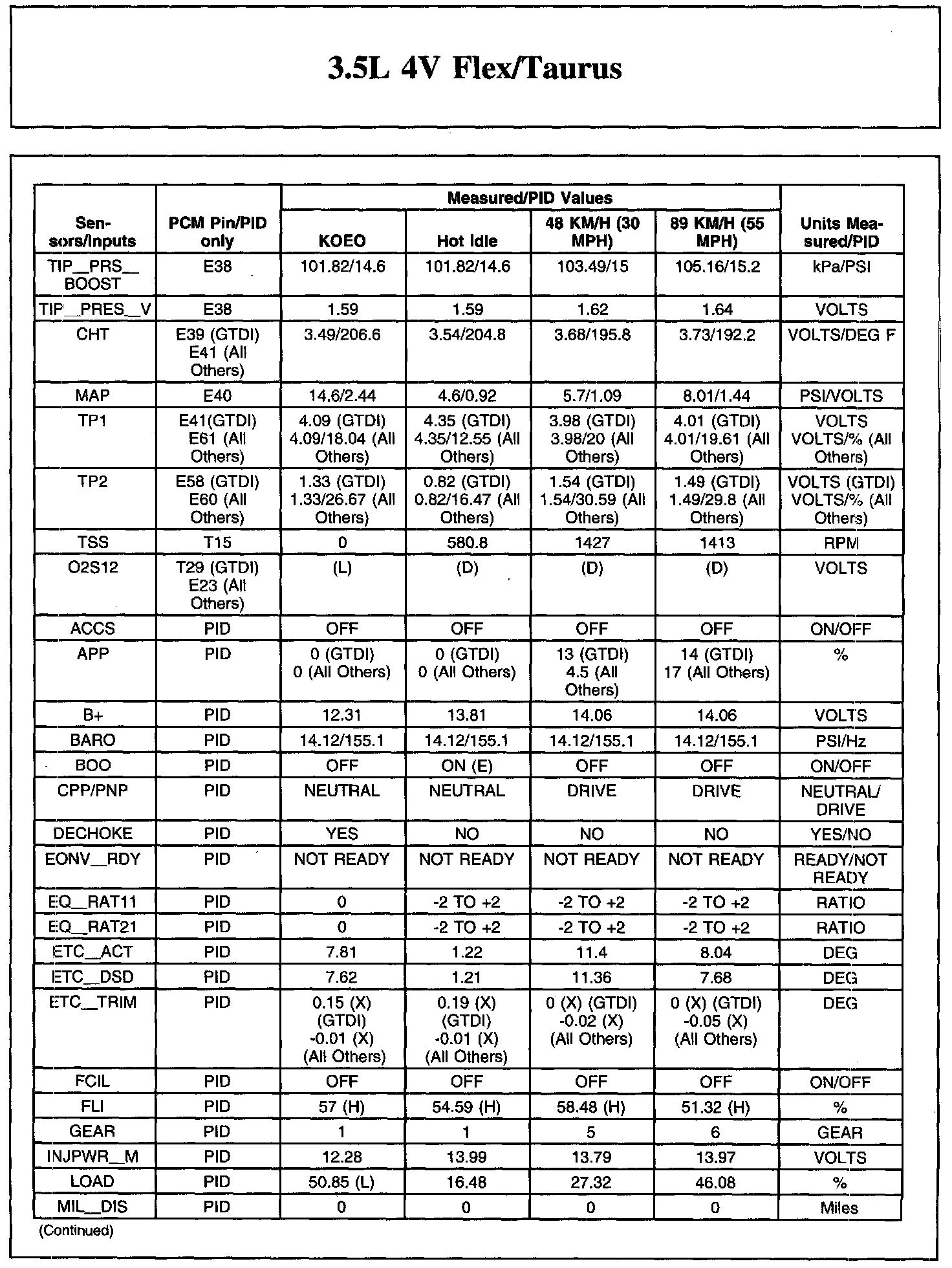 Home >> Ford >> 2010 >> Taurus FWD V6-3.5L >> Repair and Diagnosis >> Powertrain Management >> Computers and Control Systems >> Testing and Inspection >> Scan Tool Testing and Procedures >> Typical Diagnostic Reference Values