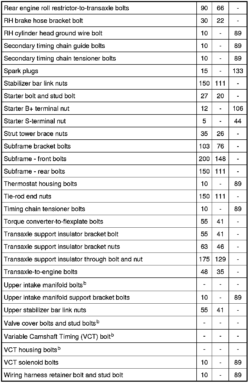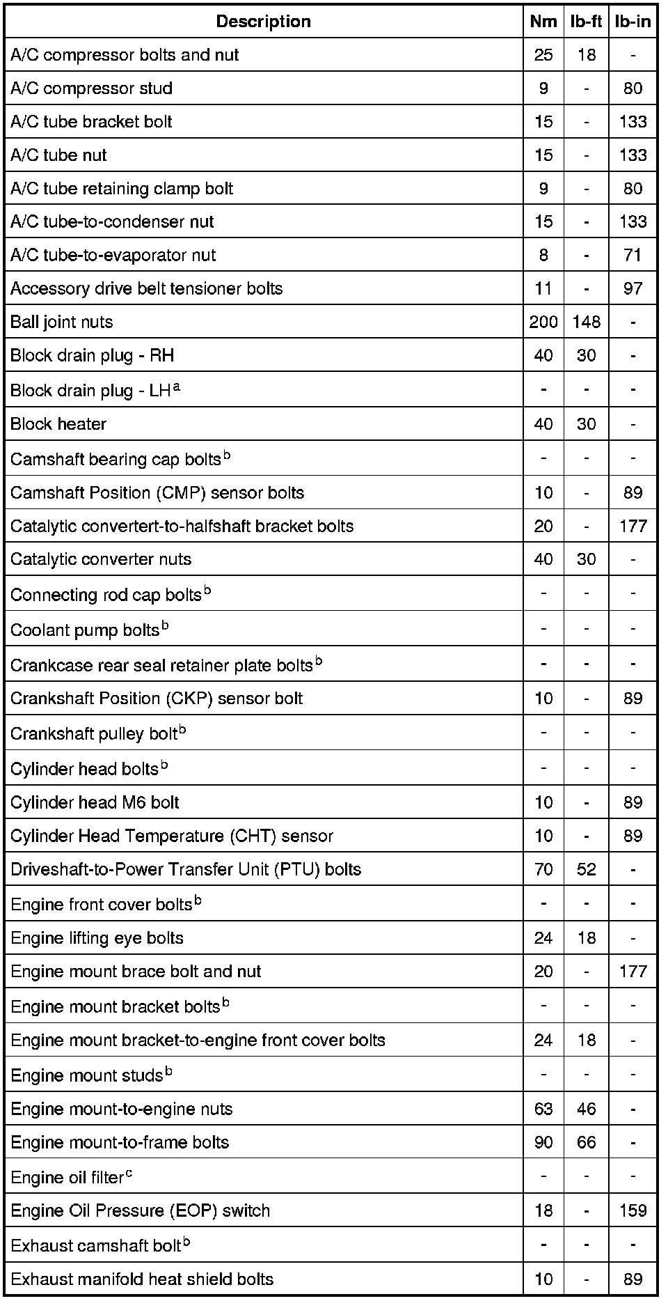 Torque Specifications