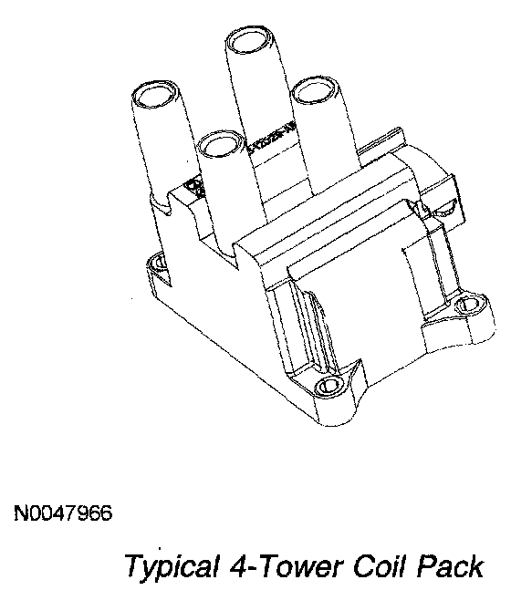 When the coil is fired by the PCM, spark is delivered through the matched pair towers to their respective spark plugs. The spark plugs are fired simultaneously and are paired so that as one fires on the compression stroke, the other spark plug fires on the exhaust stroke. The next time the coil is fired, the situation is reversed. The next pair of spark plugs fire according to the engine firing order.