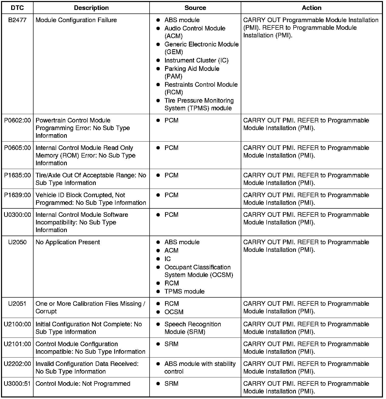 NOTE: Some modules on this vehicle utilize a 5-character DTC followed by a 2-character failure-type code. The failure-type code provides information about specific fault conditions such as opens, or shorts to ground. Continuous Memory DTCs have an additional 2-character DTC status code suffix to assist in determining DTC history.