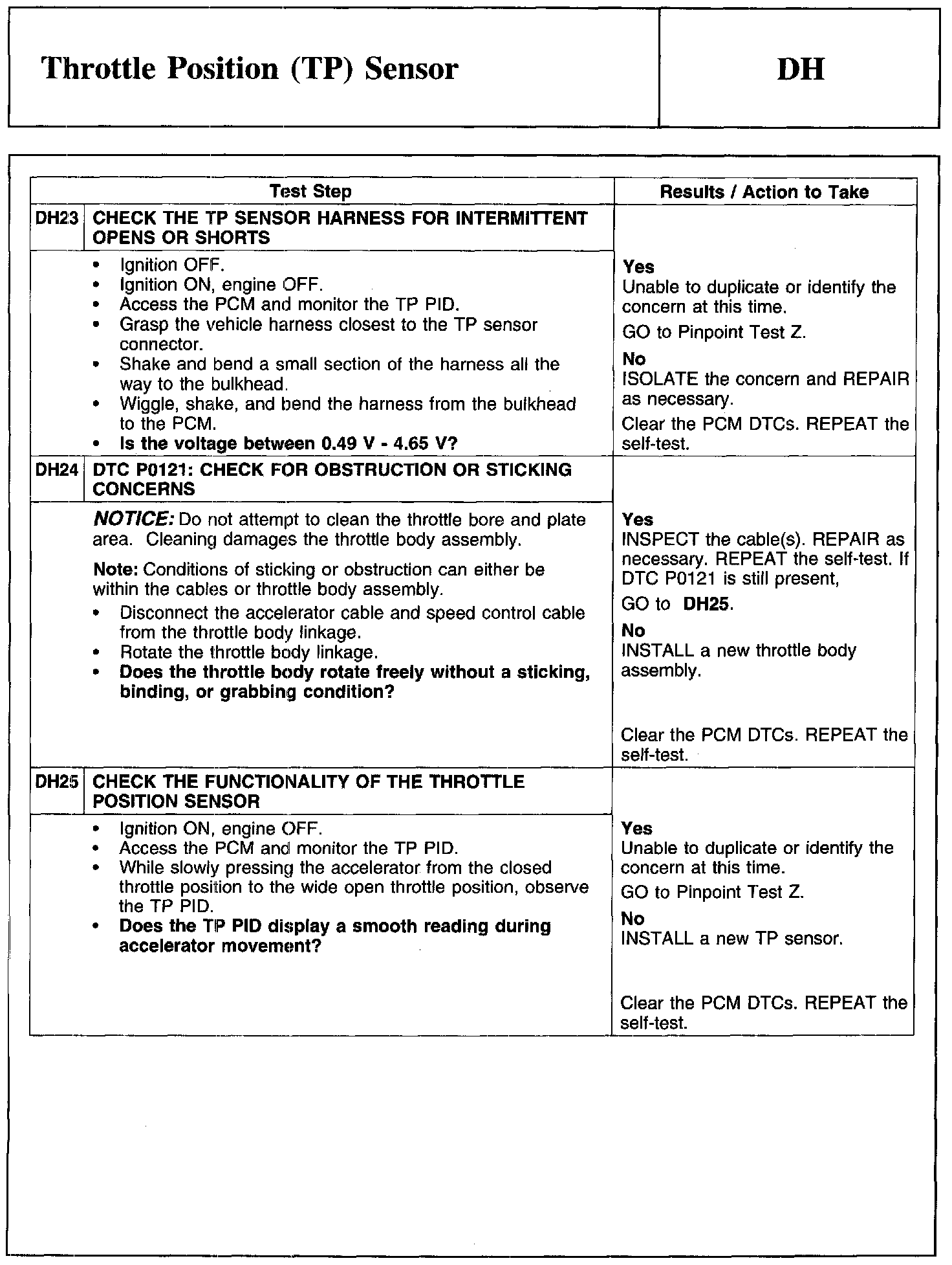 Test DH: Throttle Position (TP) Sensor