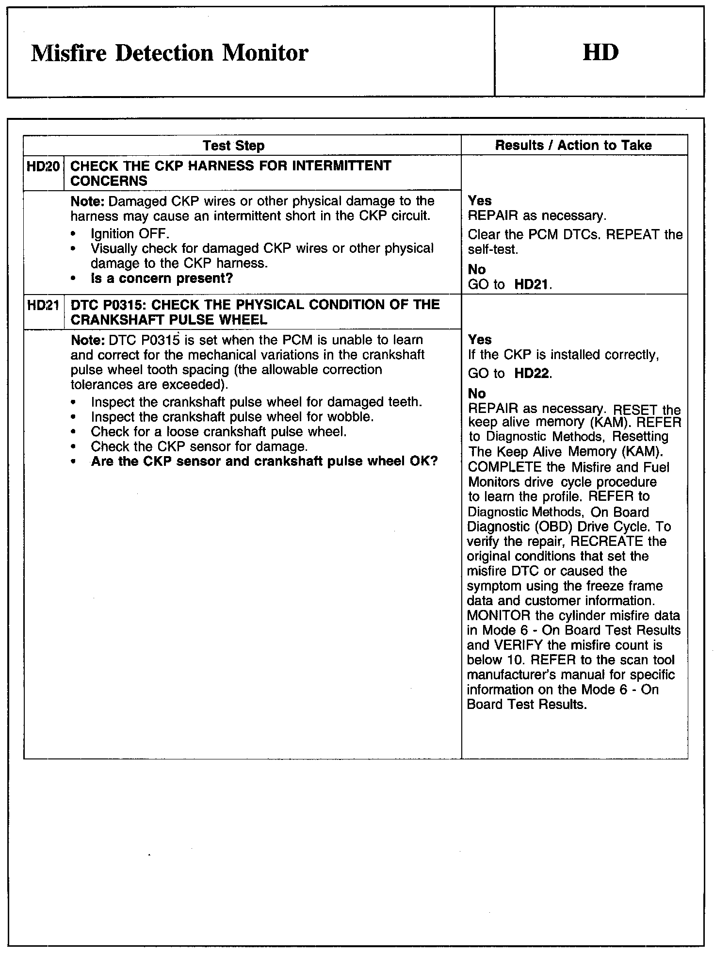PINPOINT TEST HD: MISFIRE DETECTION MONITORWarning, Note And Camshaft Position (CMP) Sensor Connector: