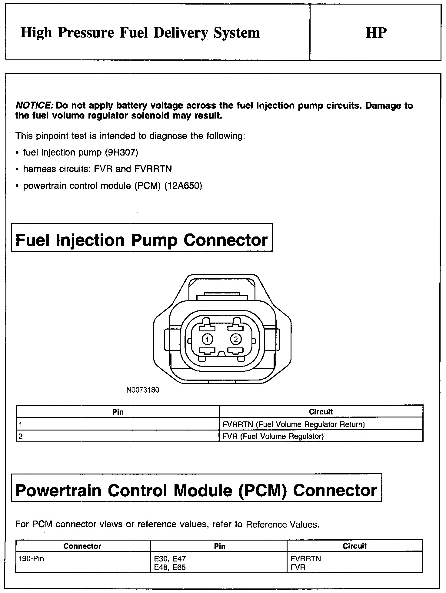 PINPOINT TEST HP: HIGH PRESSURE FUEL DELIVERY SYSTEM
