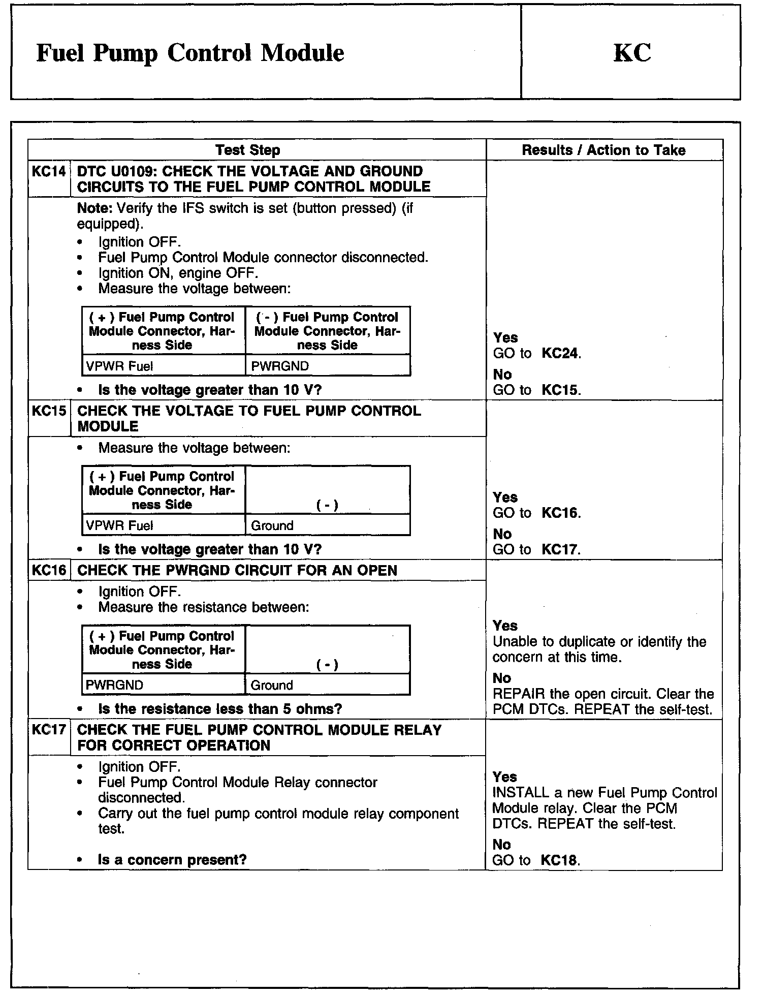 PINPOINT TEST KC: FUEL PUMP CONTROL MODULEFuel Pump Control Module Connector: