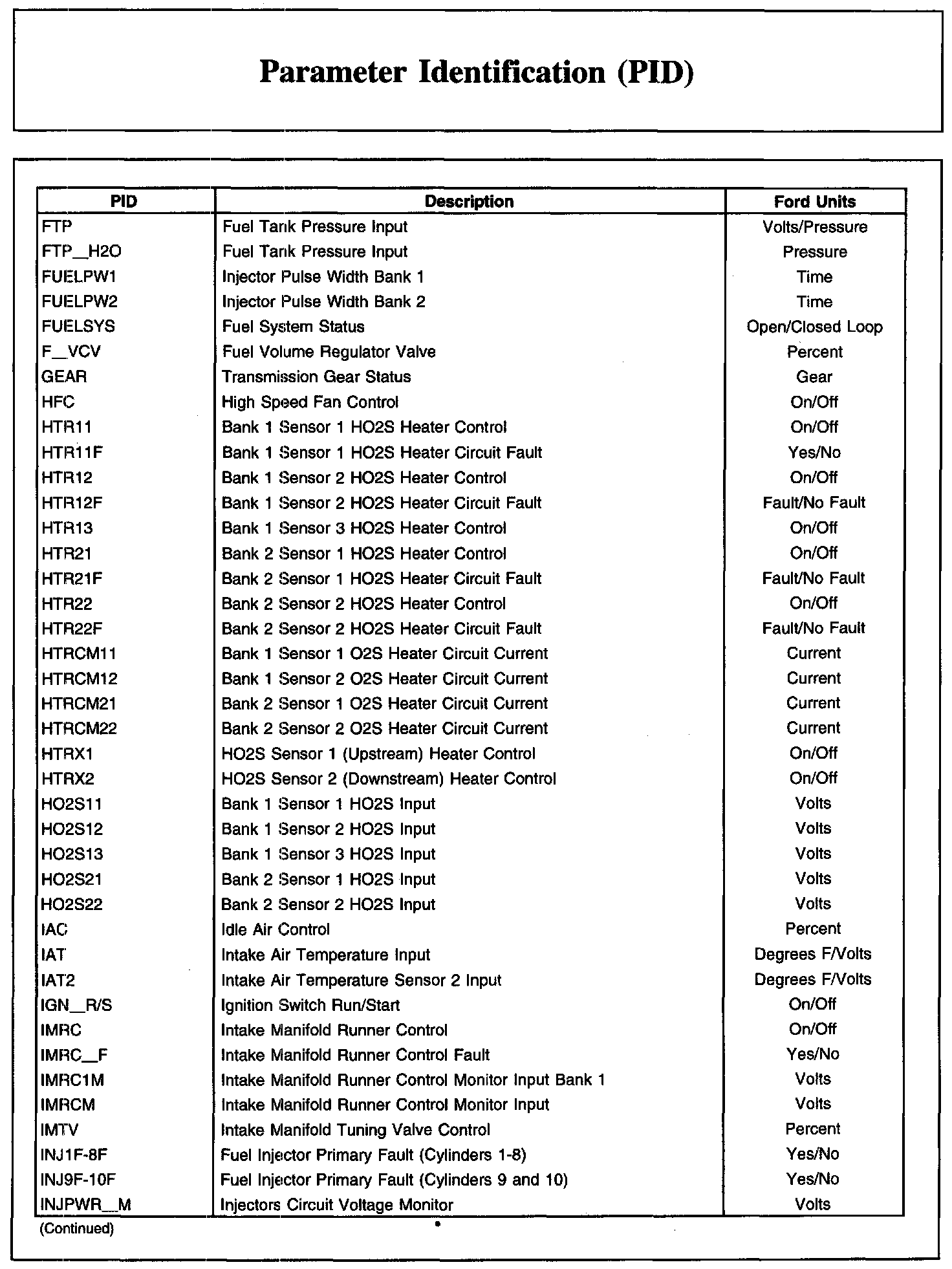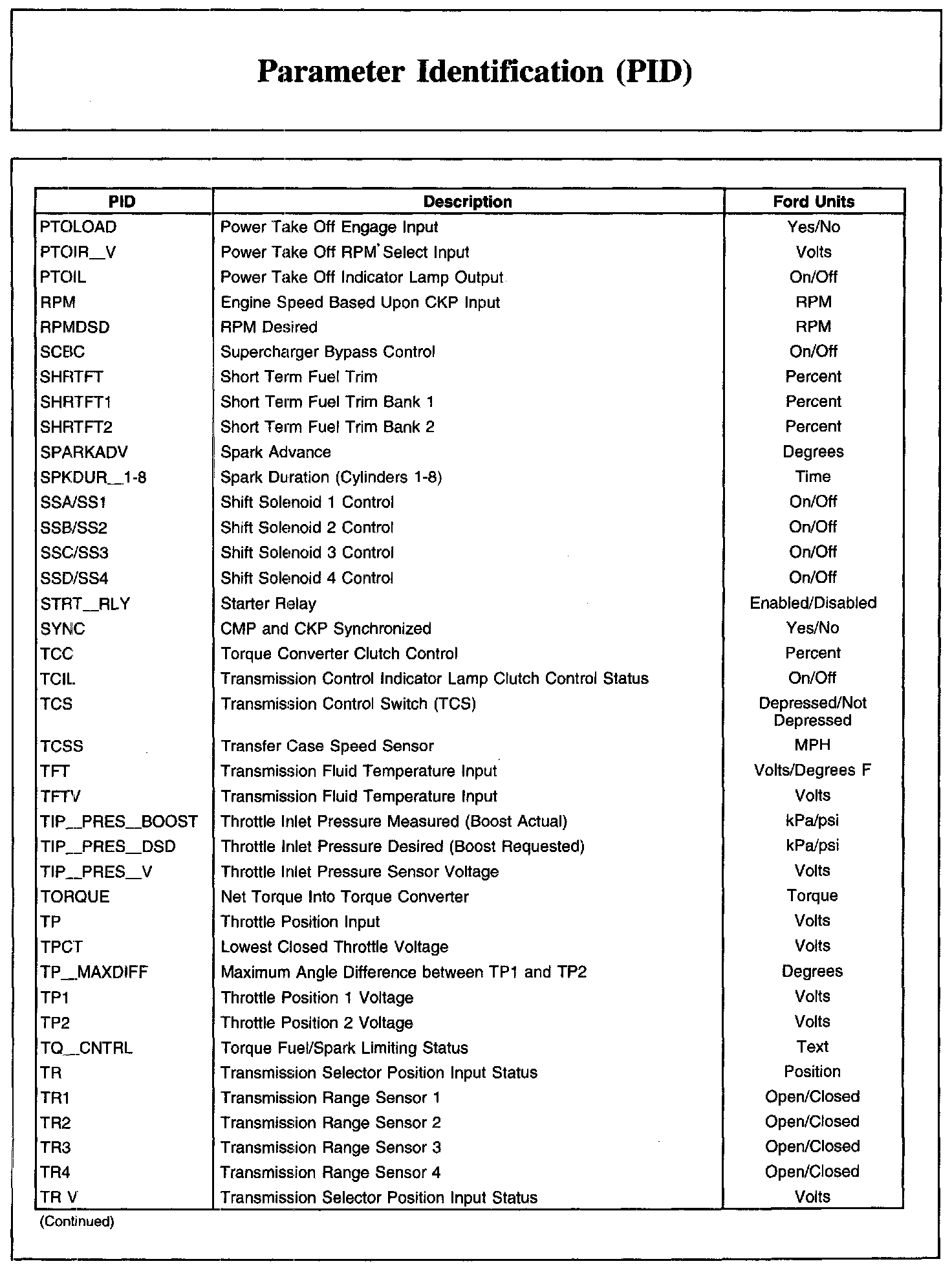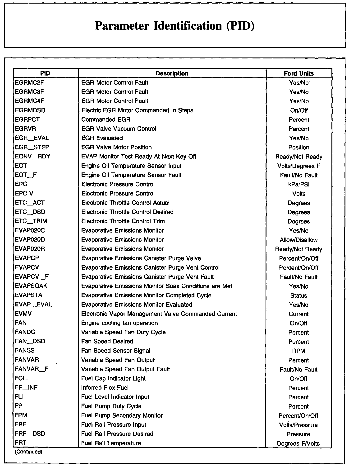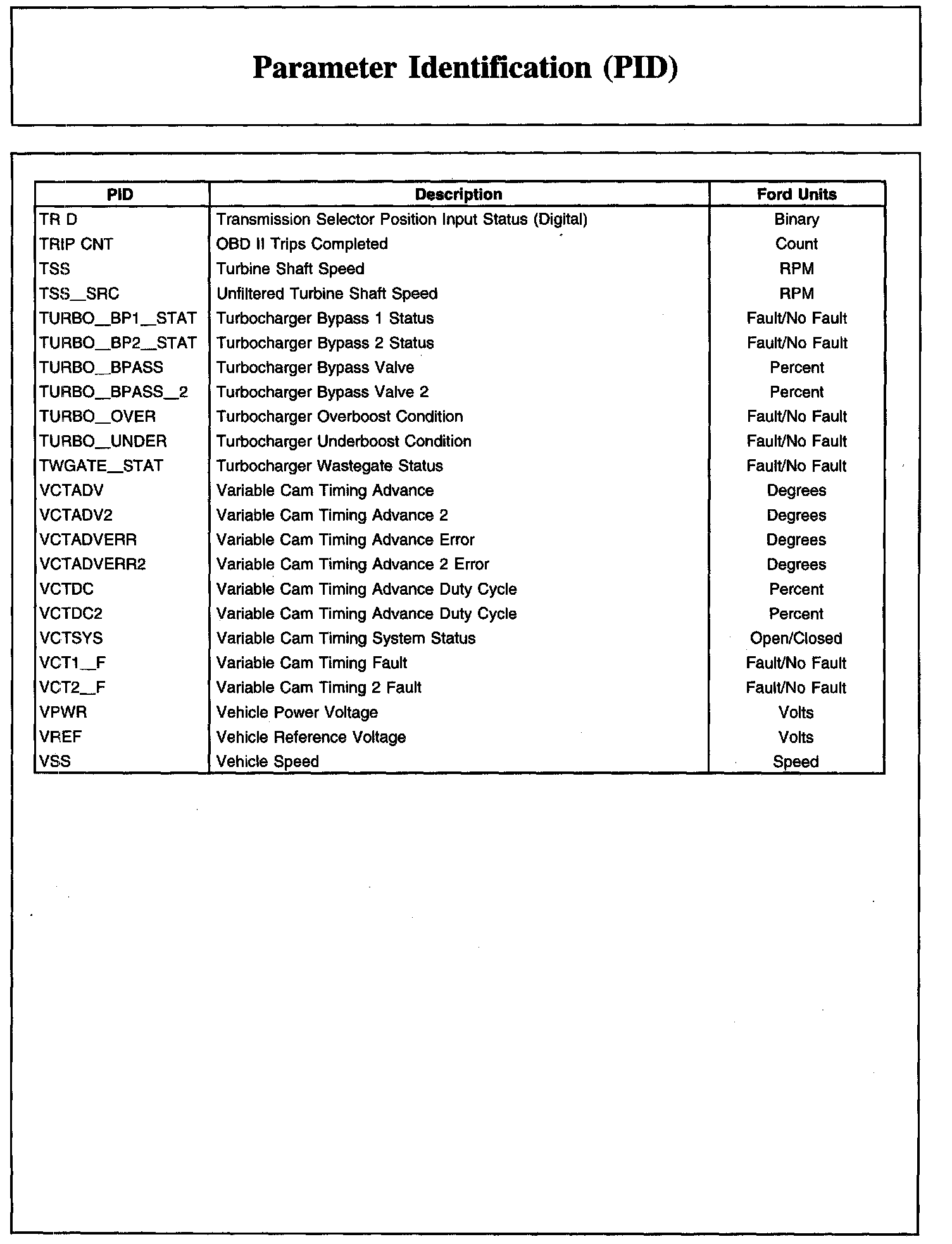 Home >> Ford >> 2010 >> Transit Connect L4-2.0L >> Repair and Diagnosis >> Powertrain Management >> Computers and Control Systems >> Testing and Inspection >> Scan Tool Testing and Procedures >> Parameter Identification (PID)