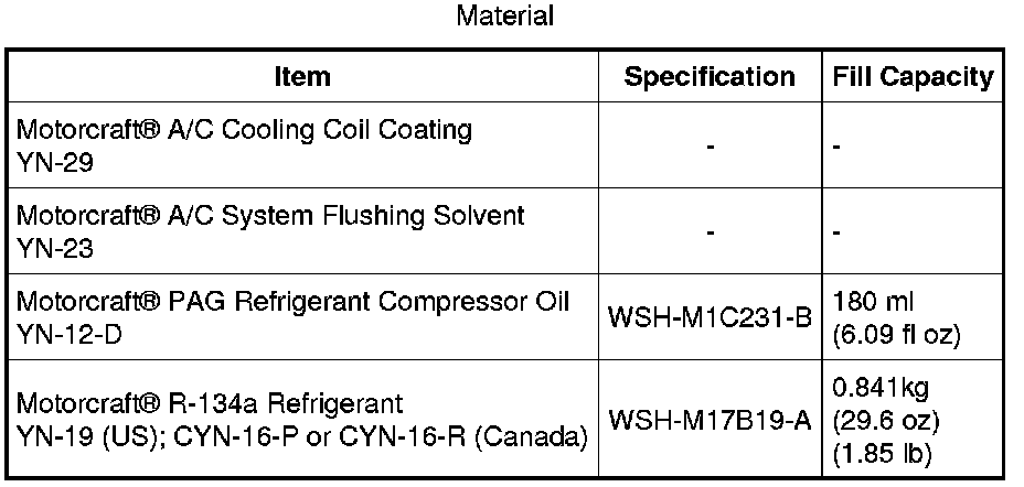 Home >> Ford >> 2010 >> Transit Connect L4-2.0L >> Repair and Diagnosis >> Specifications >> Mechanical Specifications >> Heating and Air Conditioning >> Climate Control System >> Material