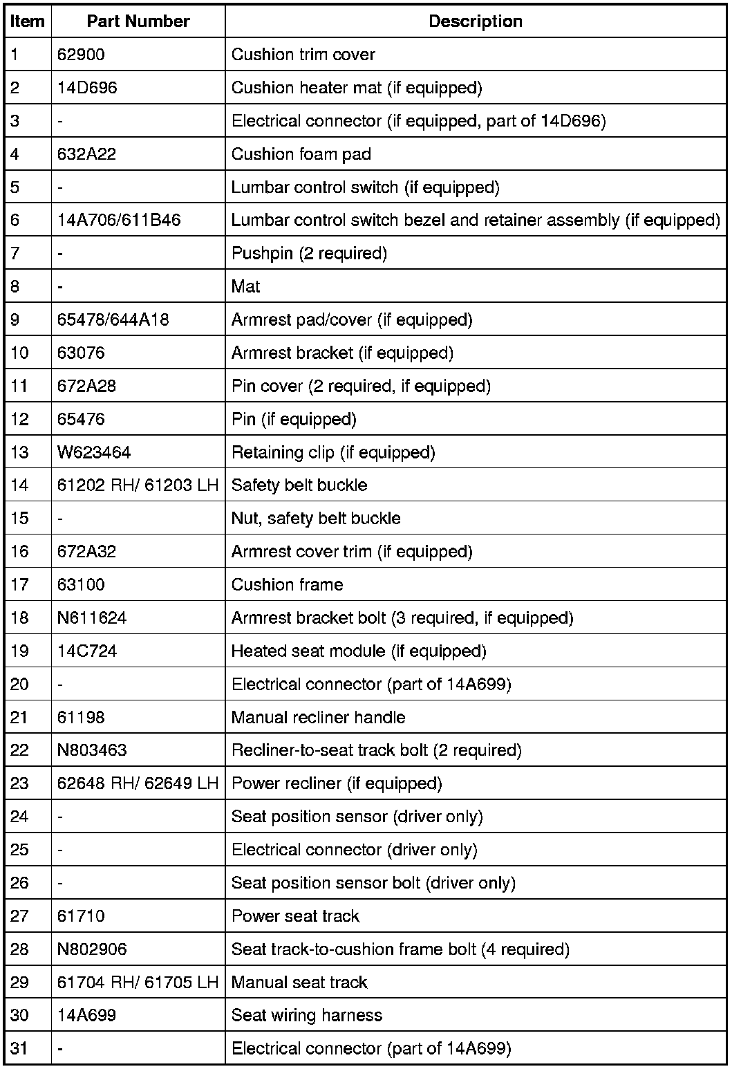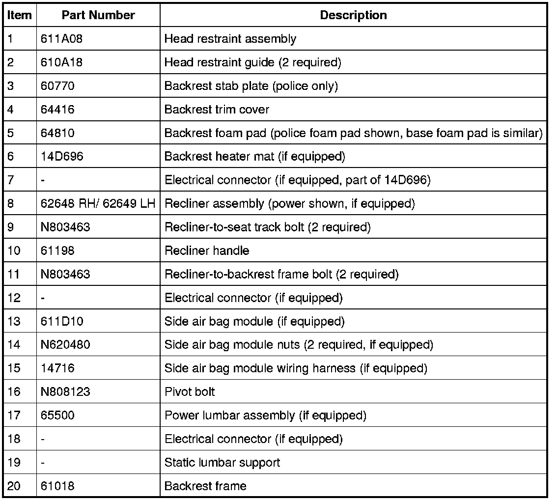 NOTE: Driver seat shown, passenger similar.
