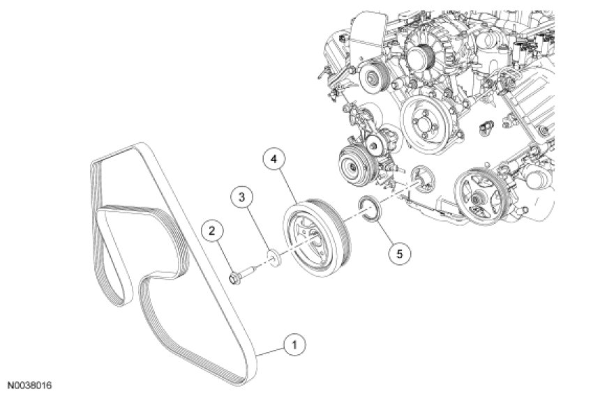 Lower End Components - Exploded View, Crankshaft Pulley and Crankshaft Front Seal