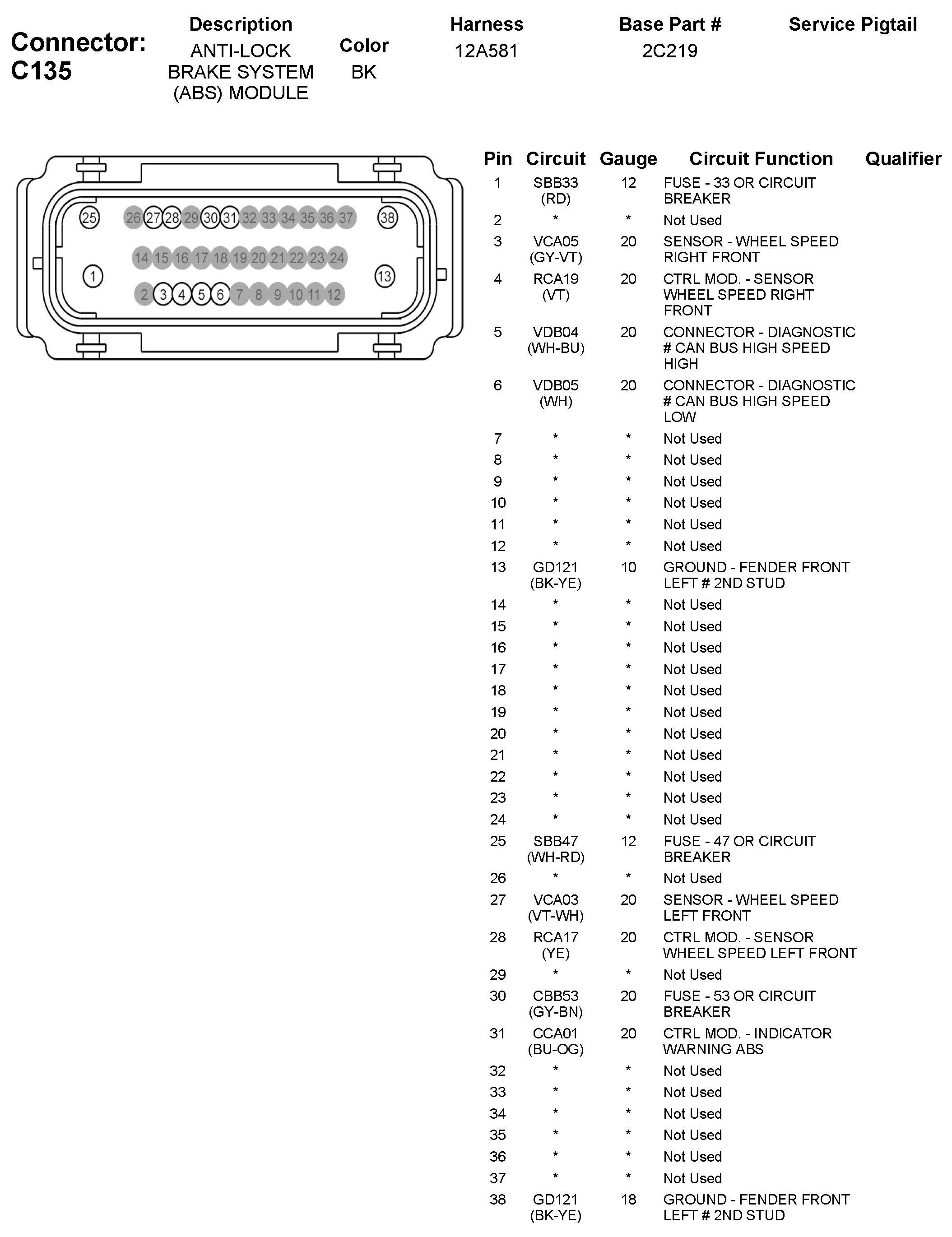 C135 Anti-Lock Brake System (ABS) Module