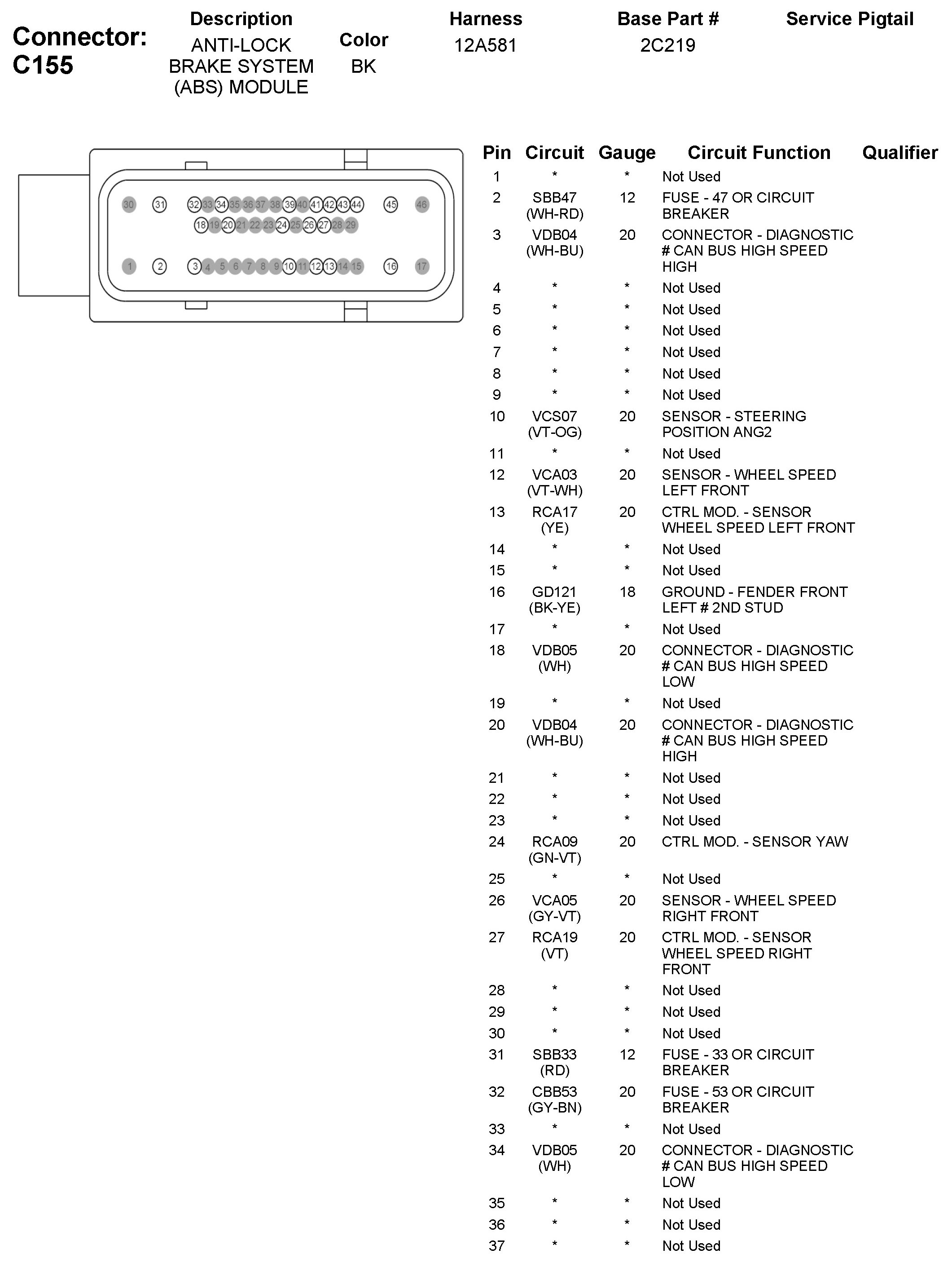 C155 Anti-Lock Brake System (ABS) Module