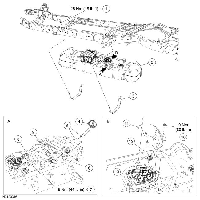 NOTE: The 151L (40 gal) aft-of-axle fuel tank shown, 208L (55 gal) aft-of-axle fuel tank and ambulance package fuel tank similar.