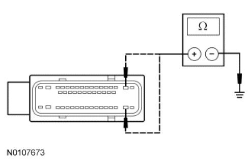 - Measure the resistance between the ABS module C155-18, circuit VDB05 (WH), harness side and the DLC C251-14, circuit VDB05 (WH), harness side.