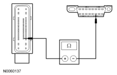 - Measure the resistance between the ABS module C155-3, circuit VDB04 (WH/BU), harness side and the DLC C251-6, circuit VDB04 (WH/BU), harness side.
