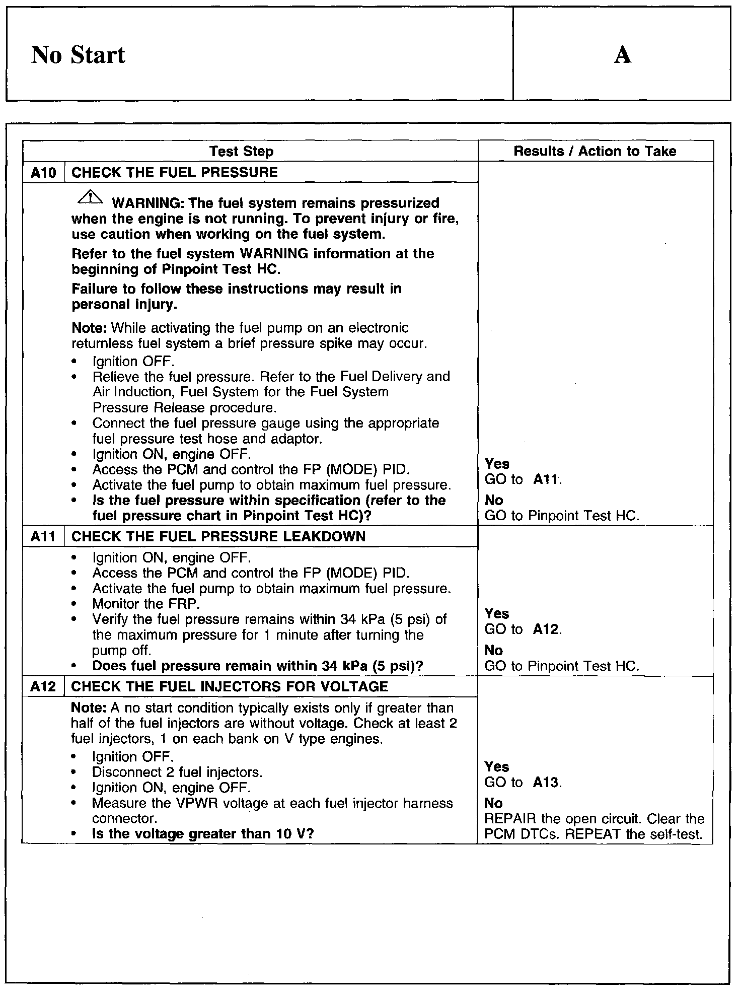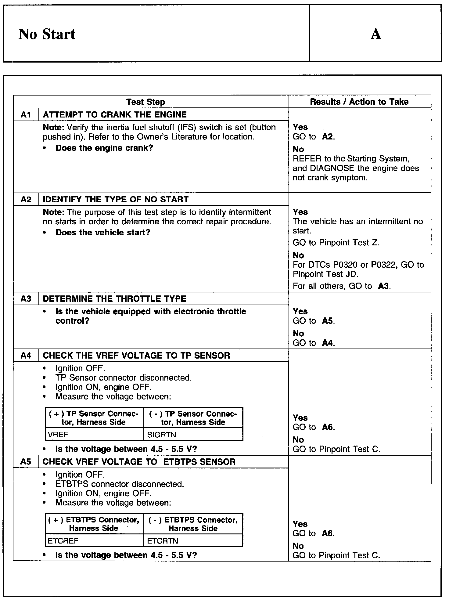 PINPOINT TEST A: NO START
