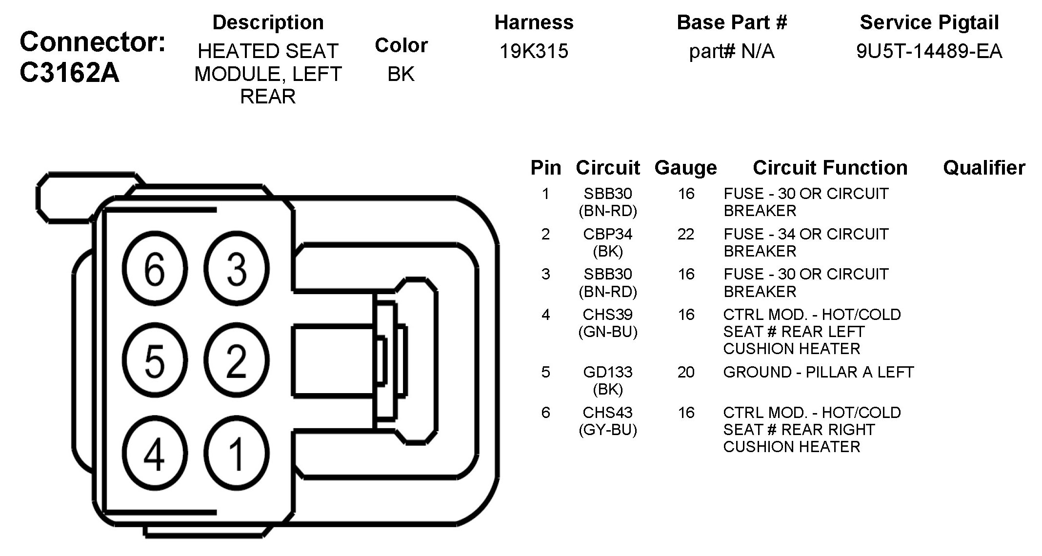 C3162A Heated Seat Module, Left Rear