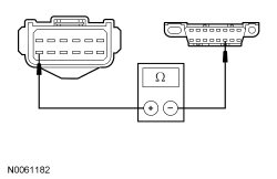 - Measure the resistance between the LH headlamp C1021B-9, circuit GD120 (BK/GN), harness side and ground.
