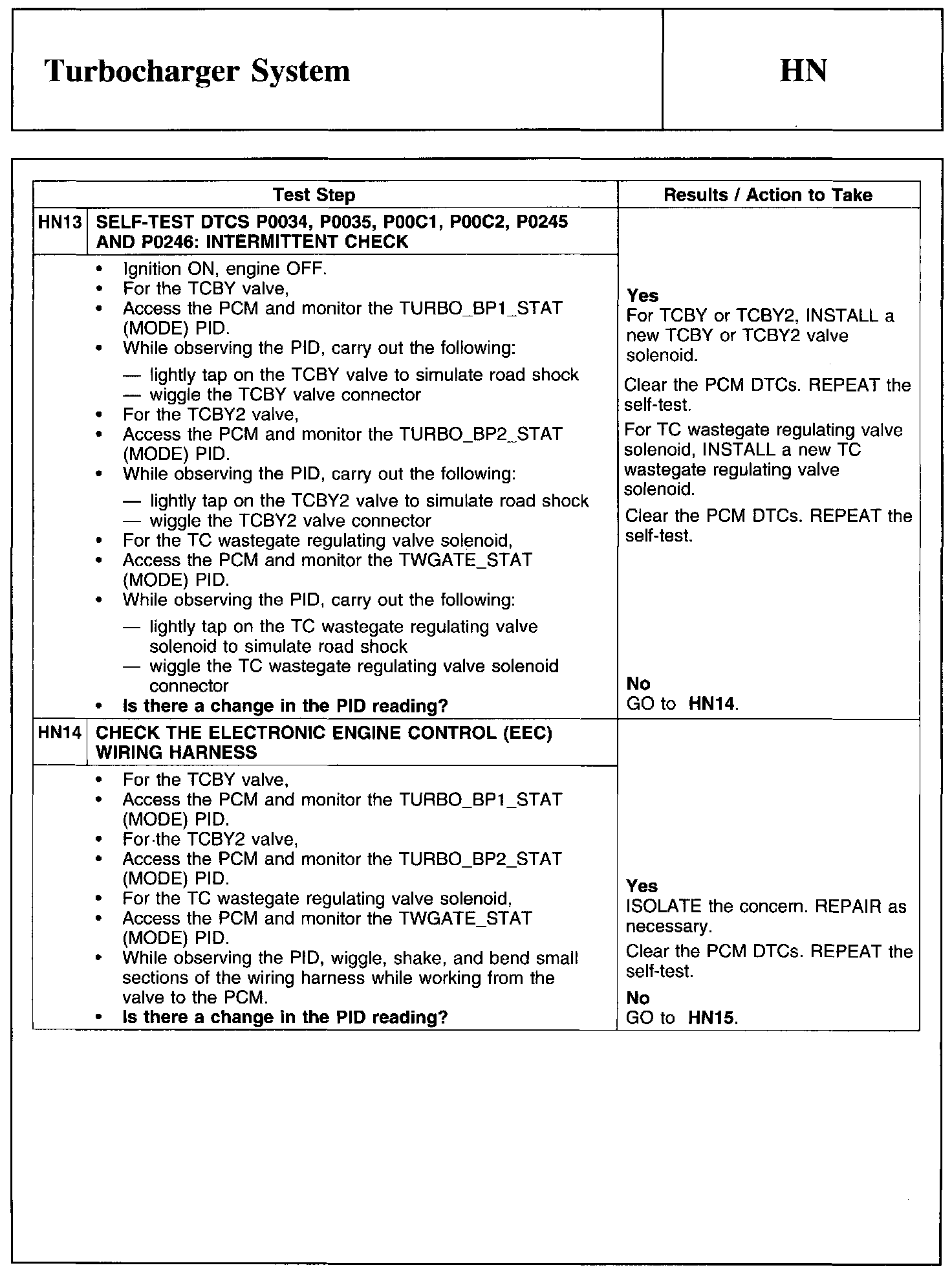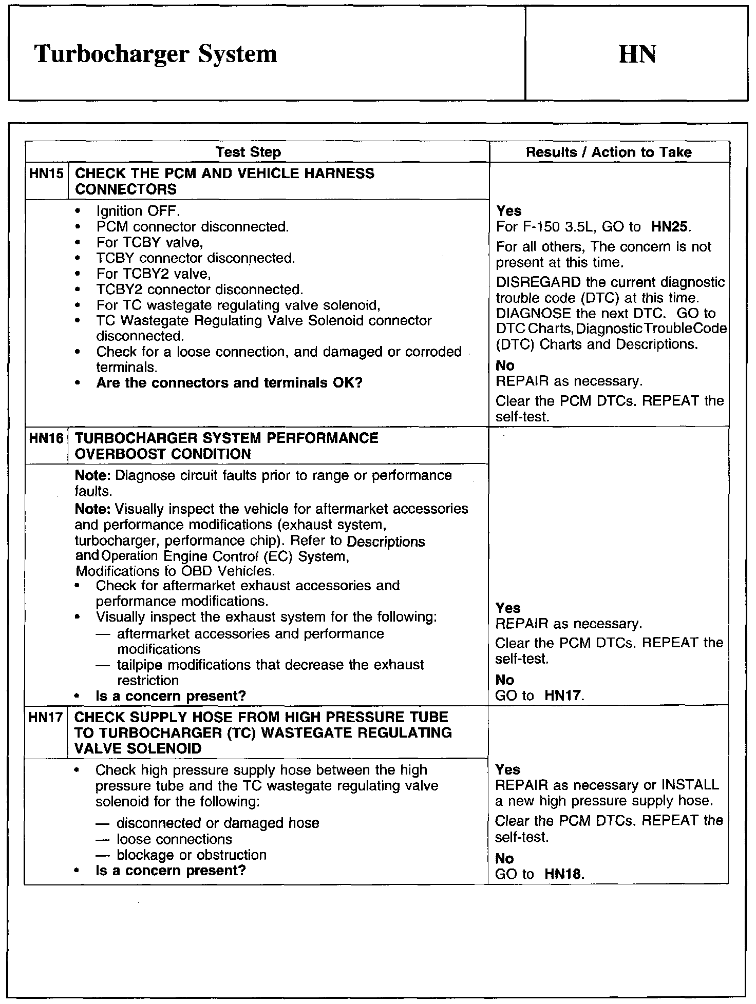 Home >> Ford >> 2011 >> Edge AWD V6-3.7L >> Repair and Diagnosis >> Powertrain Management >> Computers and Control Systems >> Testing and Inspection >> Pinpoint Tests >> Test HN: Turbocharger System
