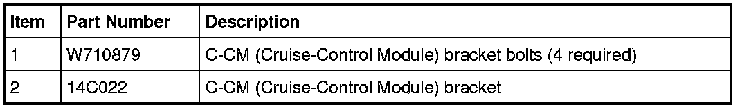 2. NOTE: If a plastic grommet breaks while the C-CM (Cruise-Control Module) is being installed, a new grommet should be installed.