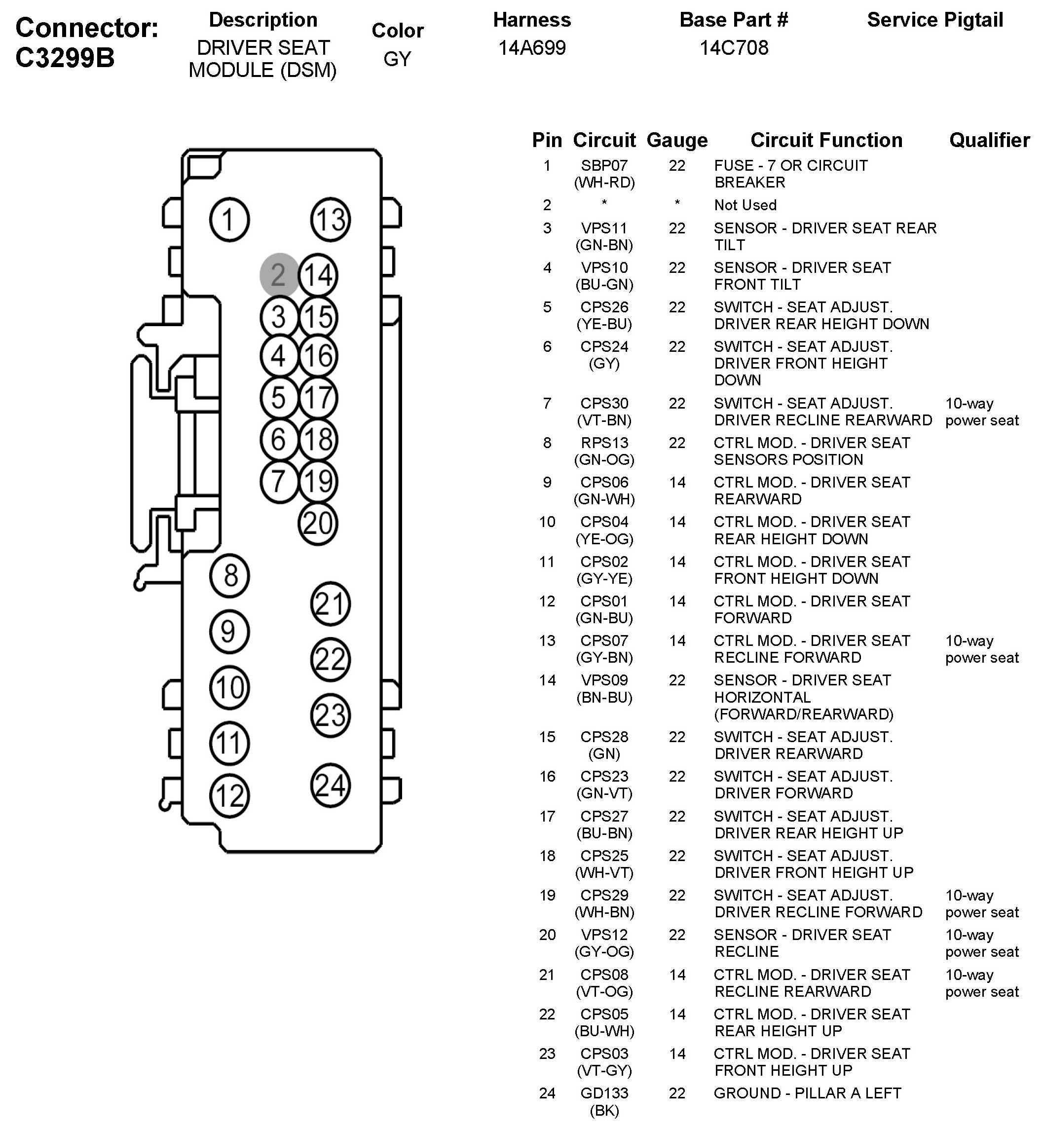 C3299B Driver Seat Module (DSM)