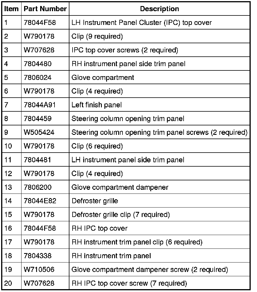 MKX Instrument Panel Fasteners