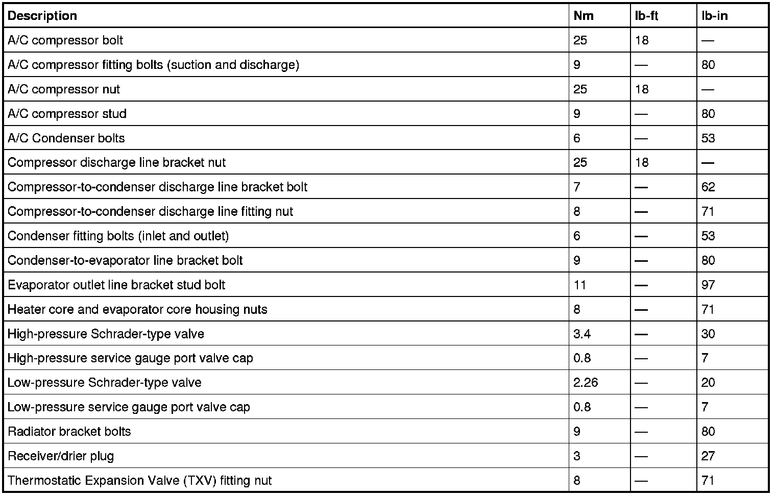 Torque Specifications