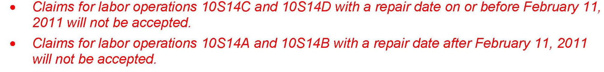 ^ Rental Expenses: Must be claimed on the same repair line as labor operation 10S14D. Follow Extended Service Plan (ESP) guidelines for dollar amounts.