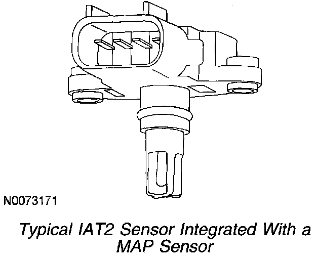The IAT2 sensor for speed density control systems is centrally located on the intake manifold. The IAT2 sensor measures the intake manifold temperature. The PCM uses the information from the IAT2 sensor to determine the speed density air charge and provide input for various spark control functions. The IAT2 sensor for a speed density system is integrated with the MAP sensor.