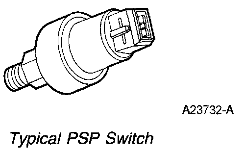The PSP switch monitors the hydraulic pressure within the power steering system. The PSP switch is a normally closed switch that opens as the hydraulic pressure increases. The PCM provides a low current voltage on the PSP circuit. When the PSP switch is closed, this voltage is pulled low through the SIGRTN circuit. The PCM uses the input signal from the PSP switch to compensate for additional loads on the engine by adjusting the idle RPM and preventing engine stall during parking maneuvers. Also, the PSP switch signals the PCM to adjust the transmission EPC pressure during increased engine load, such as during parking maneuvers.