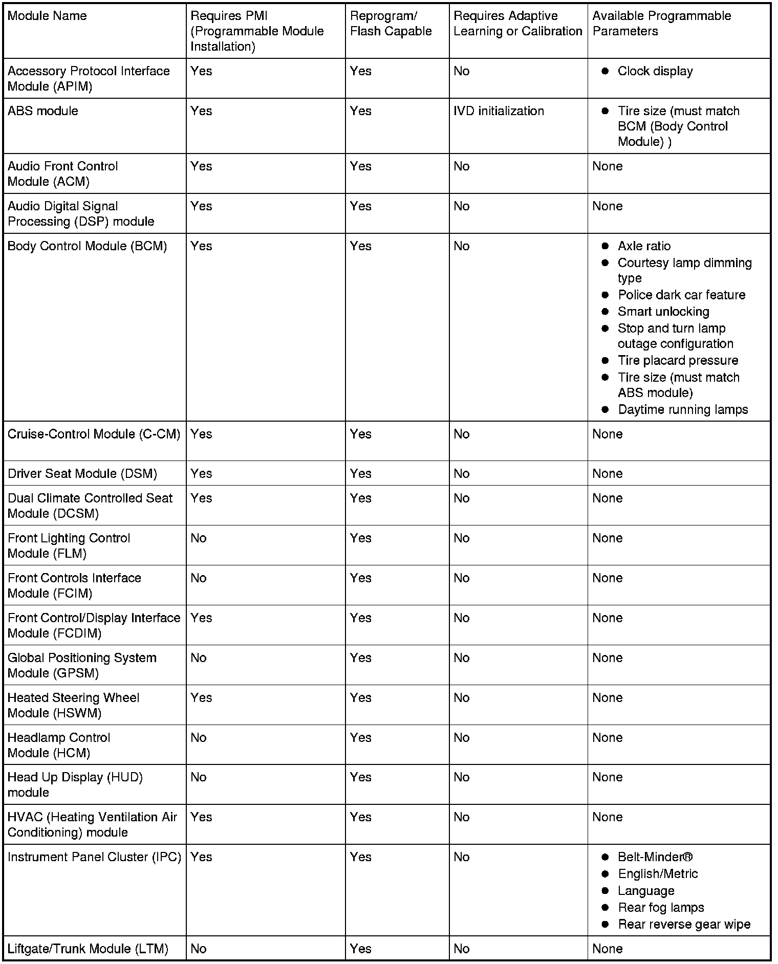 Programmable parameters are customer preference items that may be modified by the dealer via the scan tool or in some cases, modified by the customer following a procedure listed in the Owner's Literature. While many configuration options may exist for a module, only a few of these options are programmable parameters. (Some parameters must be changed in multiple modules at the same time.)