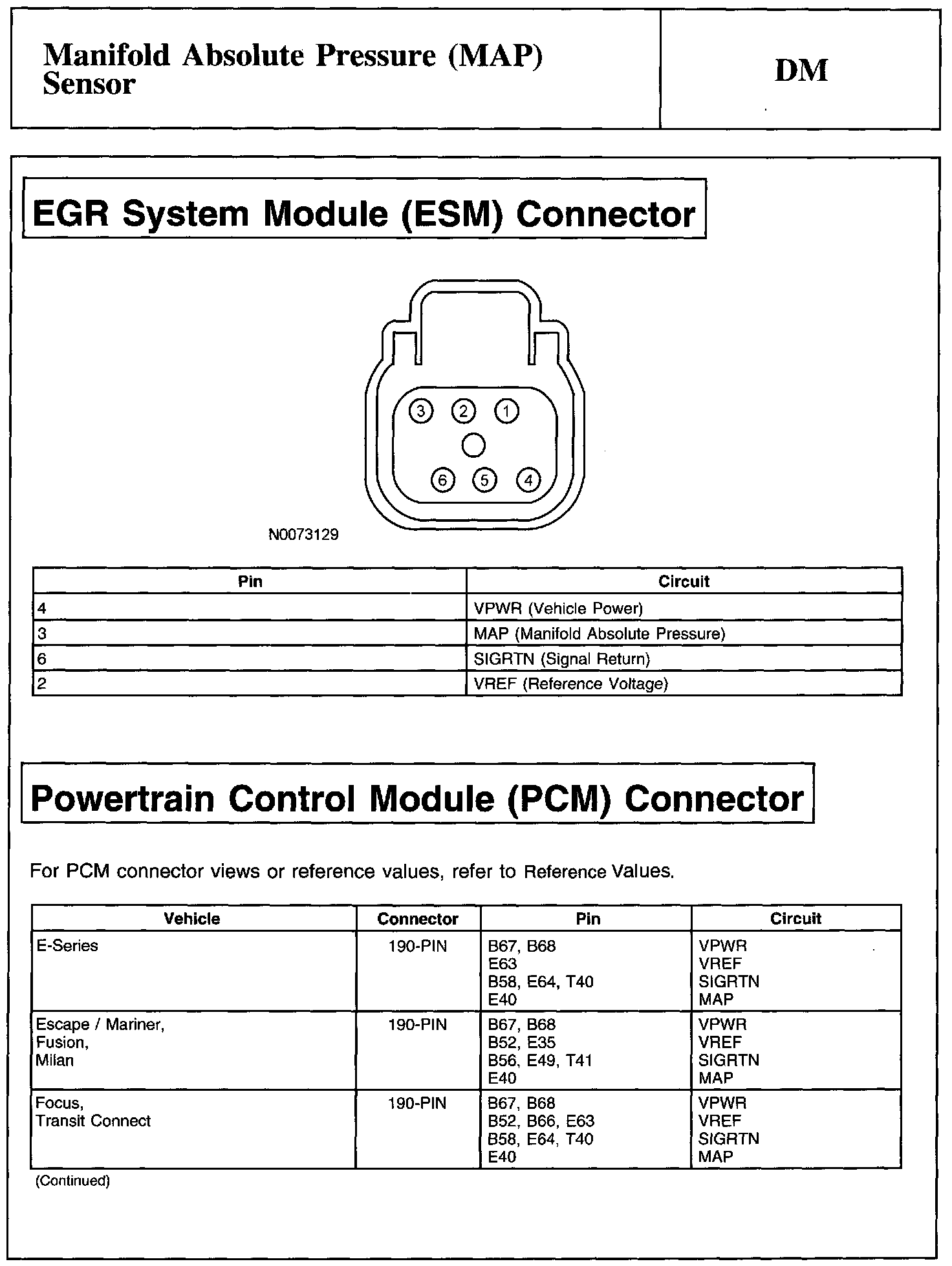Home >> Ford >> 2011 >> Edge FWD V6-3.7L >> Repair and Diagnosis >> Powertrain Management >> Computers and Control Systems >> Testing and Inspection >> Pinpoint Tests >> Test DM: Manifold Absolute Pressure (MAP) Sensor