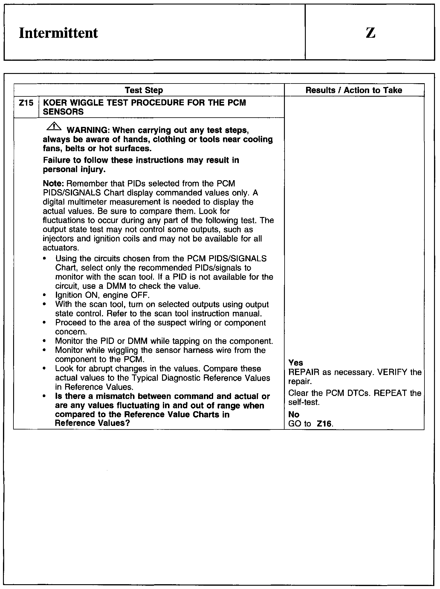 Test Z: Intermittent