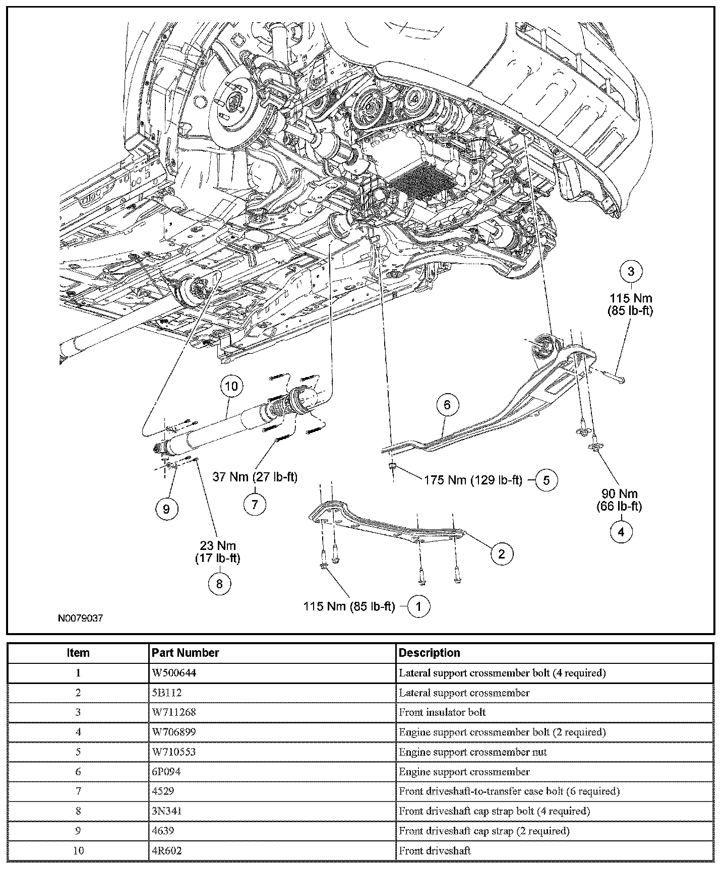 7. Remove the 4 bolts (2 each side) and the lateral support crossmember.