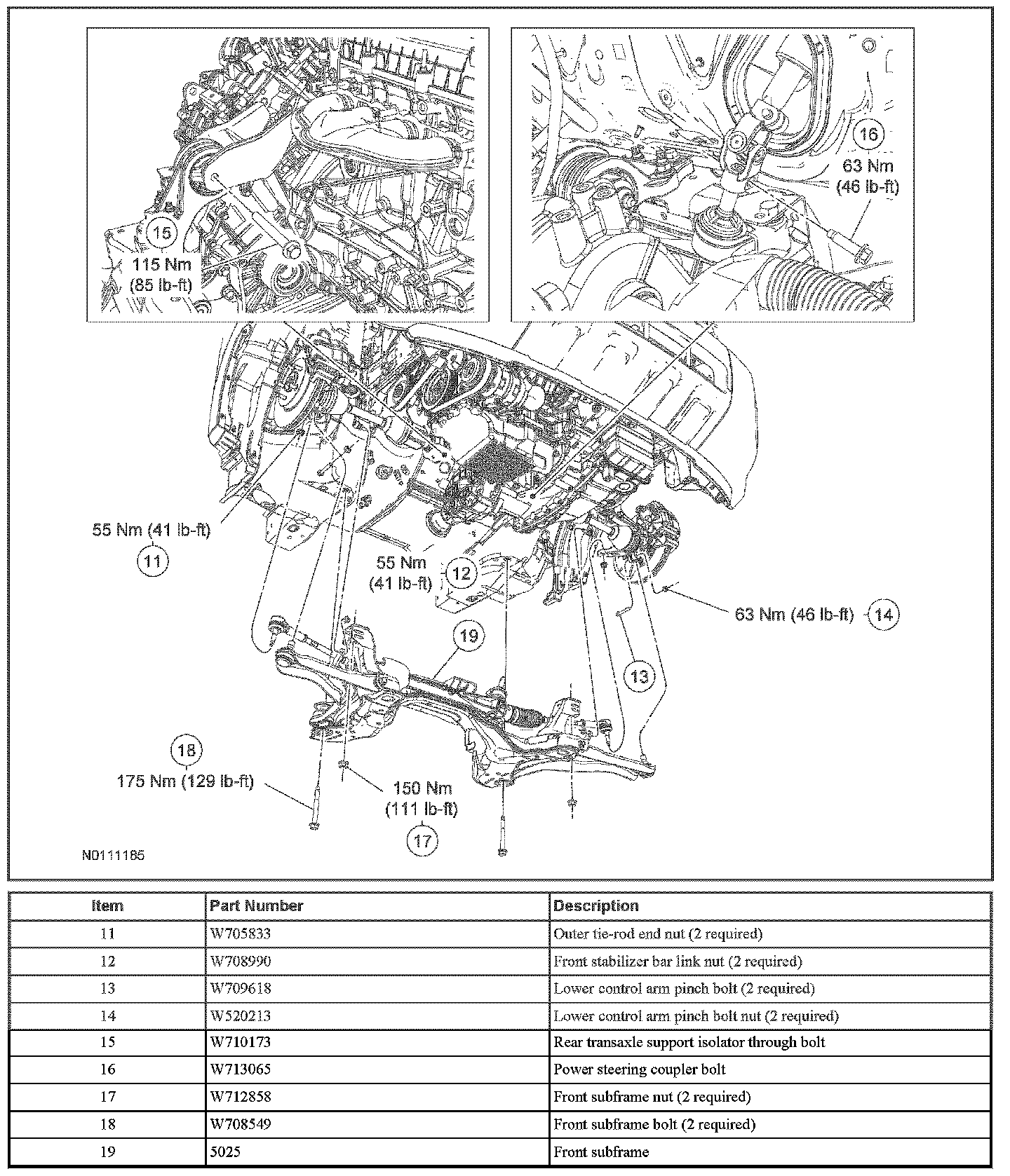Suspension and subframe fasteners are critical parts because they affect performance of vital parts and systems and their failure can result in major service expense. A new part with the same part number must be installed if installation becomes necessary. Do not use a replacement part of lesser quality or substitute design. Torque values must be used as specified during reassembly to make sure of correct retention of these parts.