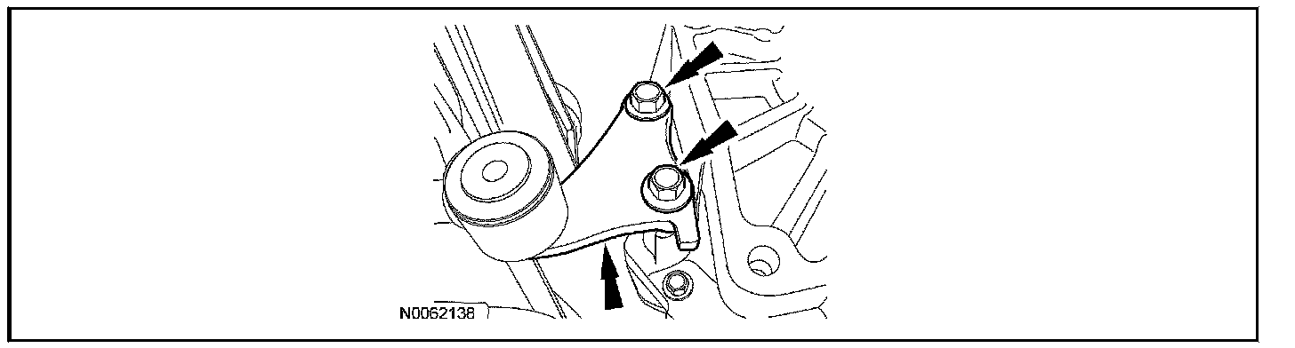 12. Remove the 2 bolts from the lower transmission insulator and retainer bracket.
