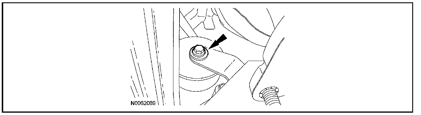 13. Remove the nut and the engine support crossmember. Discard the nut.