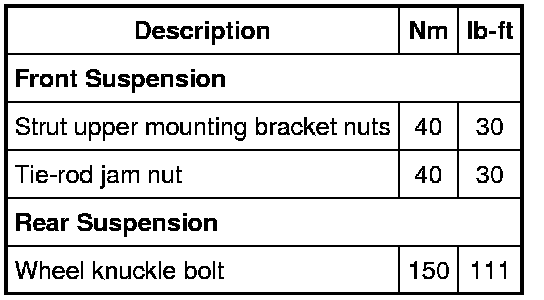Torque Specifications