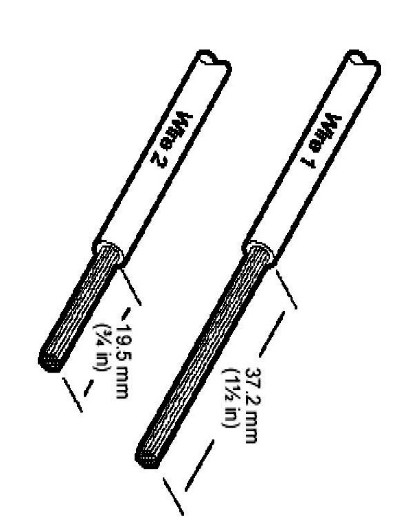 2. Strip 6.35mm (1/4 in) of insulation from each wire end, taking care not to nick or cut wire strands.