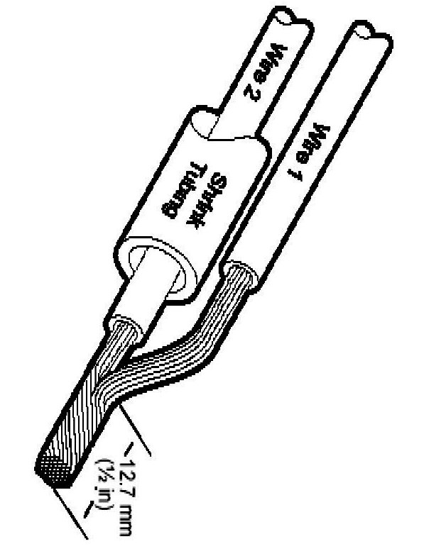 12. Evenly position supplied heat shrink tubing over wire repair.