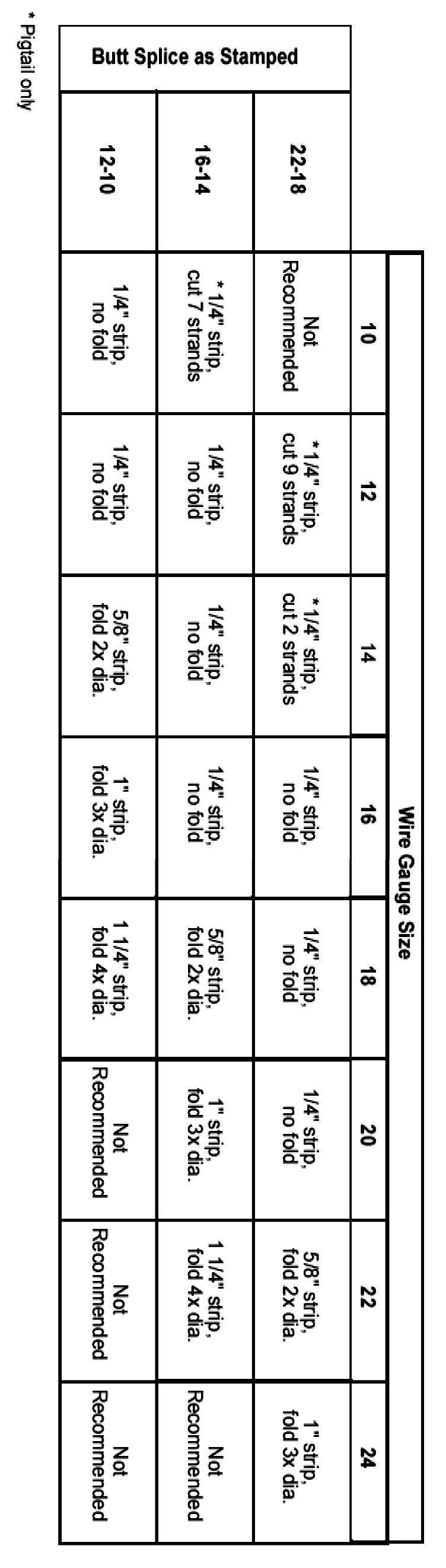 Recommended splicing method - Crimp (For 10-22 AWG Diameter Wire to Like Wire Diameter)