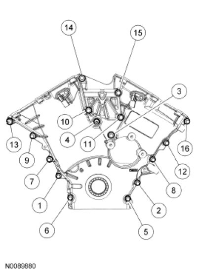 Position the engine front cover and install the bolts.