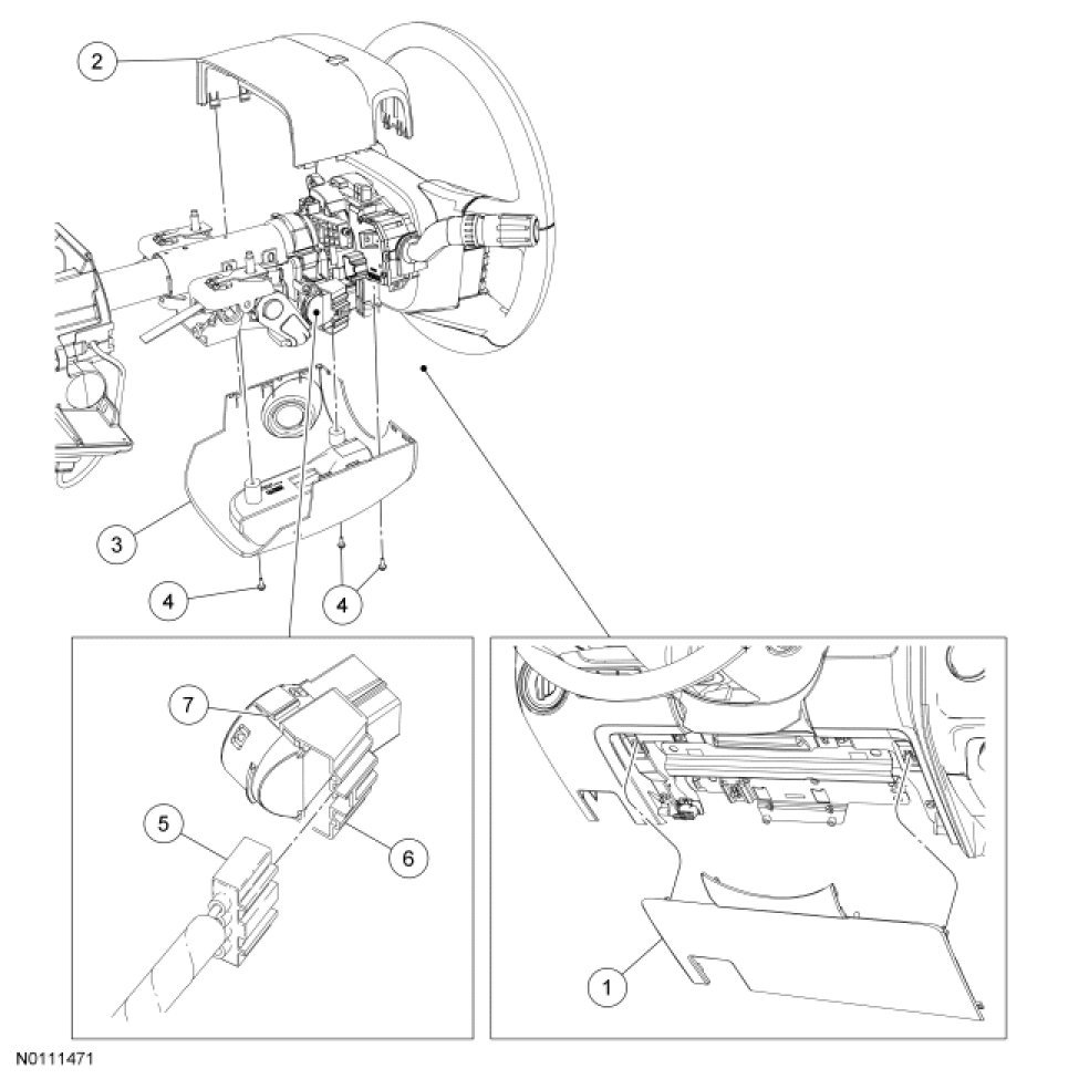 4. Remove the upper and lower steering column shrouds. For additional Information, refer to Steering Column Steering Column Shroud