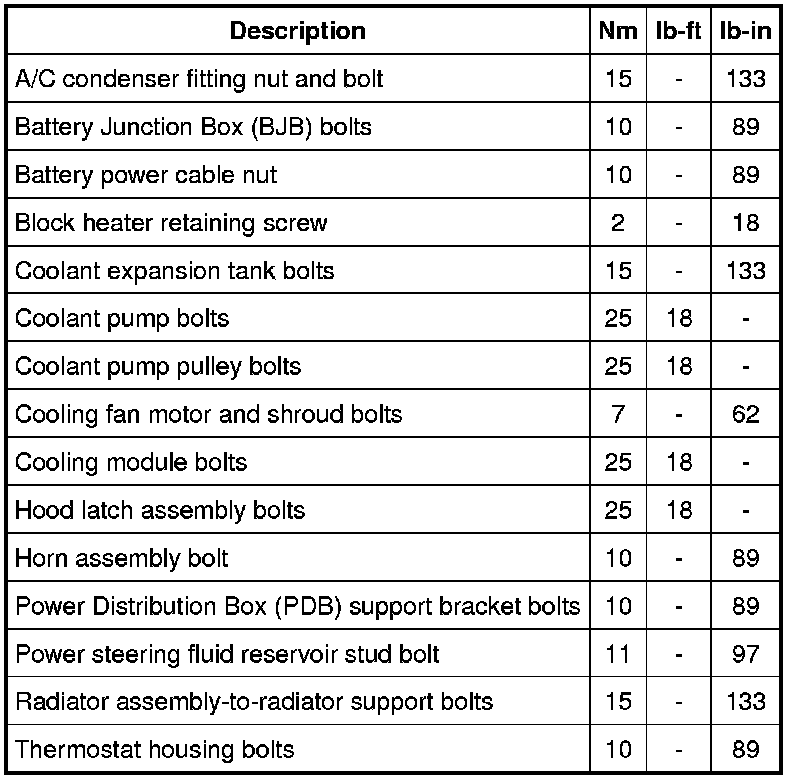 Torque Specifications