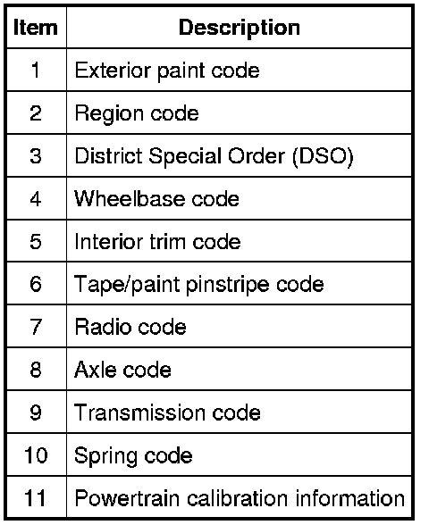 Powertrain calibration information is printed in the lower right corner of the VC label. Only the base calibration information is printed. Revision levels will not appear, however, they can be obtained through a scan tool using the most current software revision.