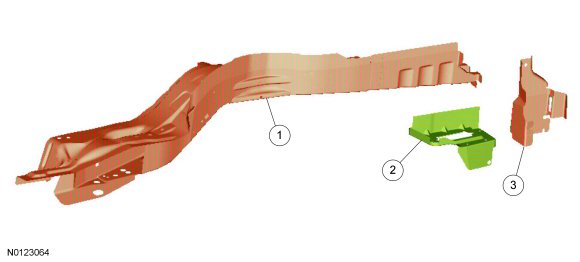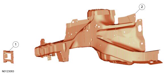 NOTICE: Frame members are a combination of HSLA (High-Strength Low Alloy) and UHSS (Ultra High Strength Steel). Because of this design feature, sectioning is not recognized by Ford Motor Company. Frame Members must be replaced at the factory seams.