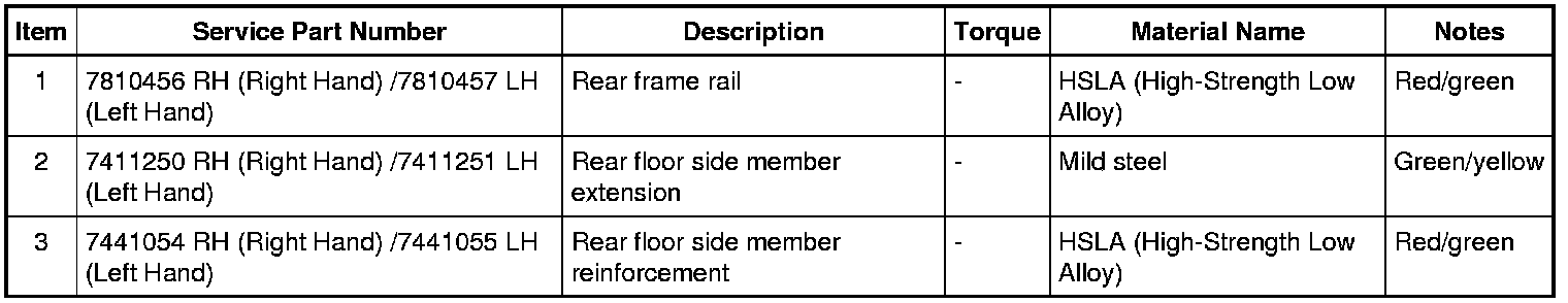 NOTICE: Frame members are made of combinations of HSLA (High-Strength Low Alloy) and UHSS (Ultra High Strength Steel). Because of this, sectioning is not recognized by Ford Motor Company. Frame members must be replaced at the factory seams.