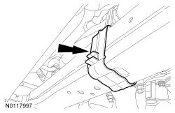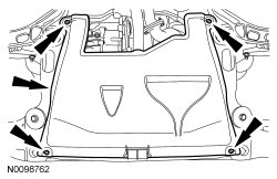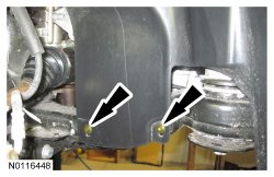 Position the RH (Right Hand) and LH (Left Hand) engine splash shields and install the 4 lower pin-type retainers.