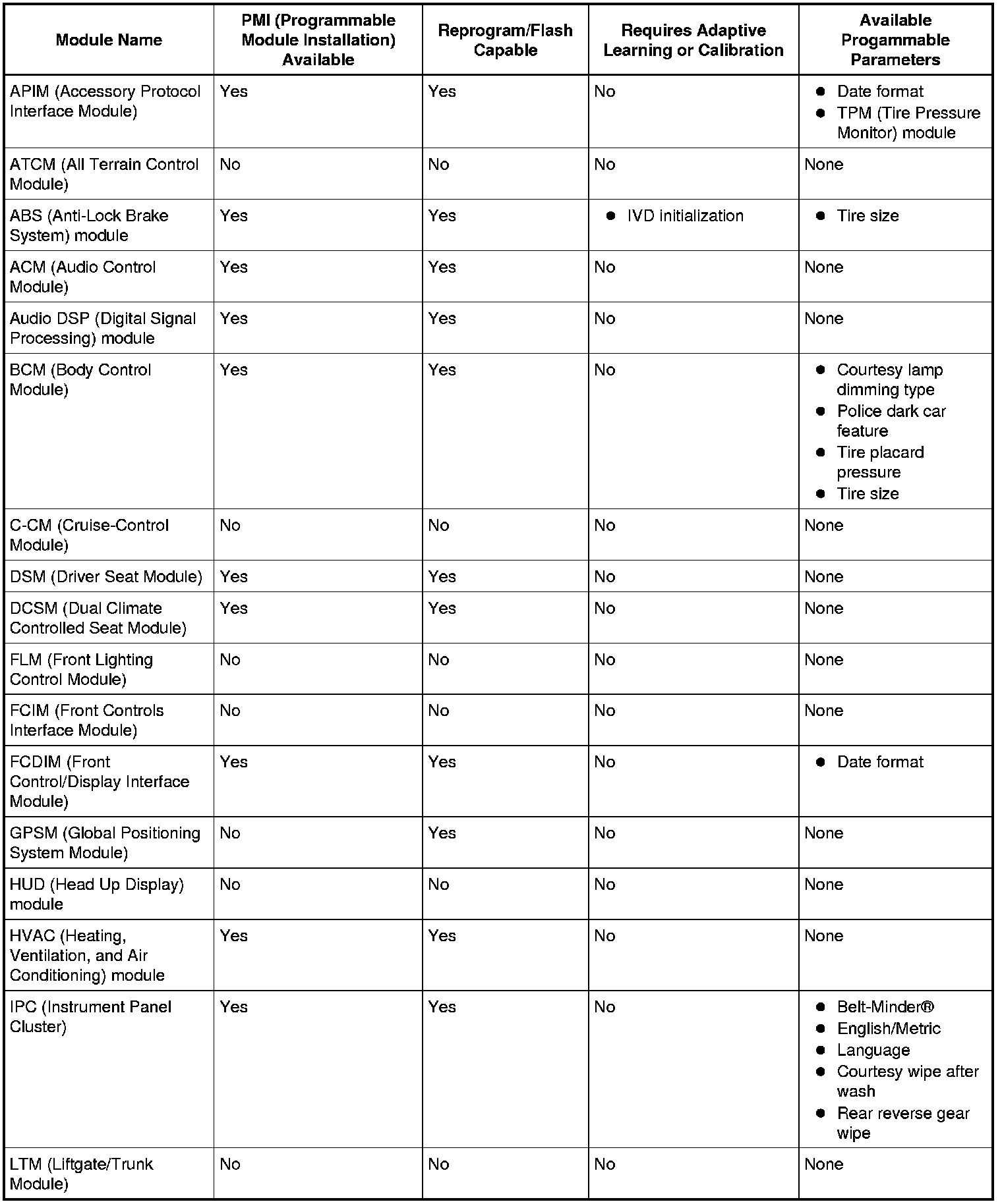 Programmable parameters are customer preference items that may be modified by the dealer via the scan tool or in some cases, modified by the customer following a procedure listed in the Owner's Literature. While many configuration options may exist for a module, only a few of these options are programmable parameters. (Some parameters must be changed in multiple modules at the same time.)