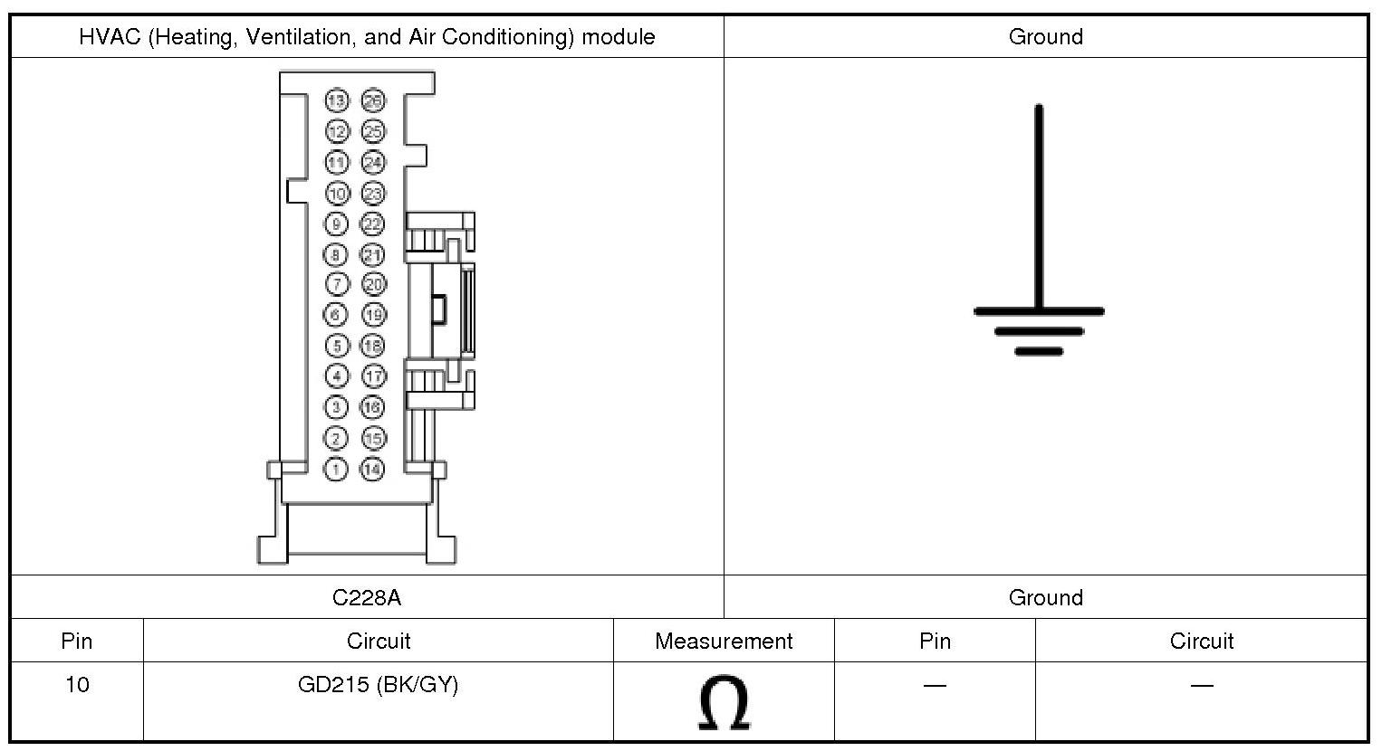 1. Disconnect: HVAC (Heating, Ventilation, and Air Conditioning) Module C228A.