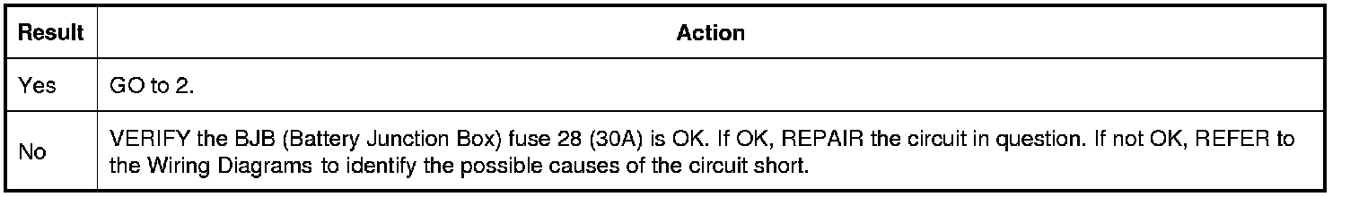 Verify BJB (Battery Junction Box) fuse 28 (30A) is OK.